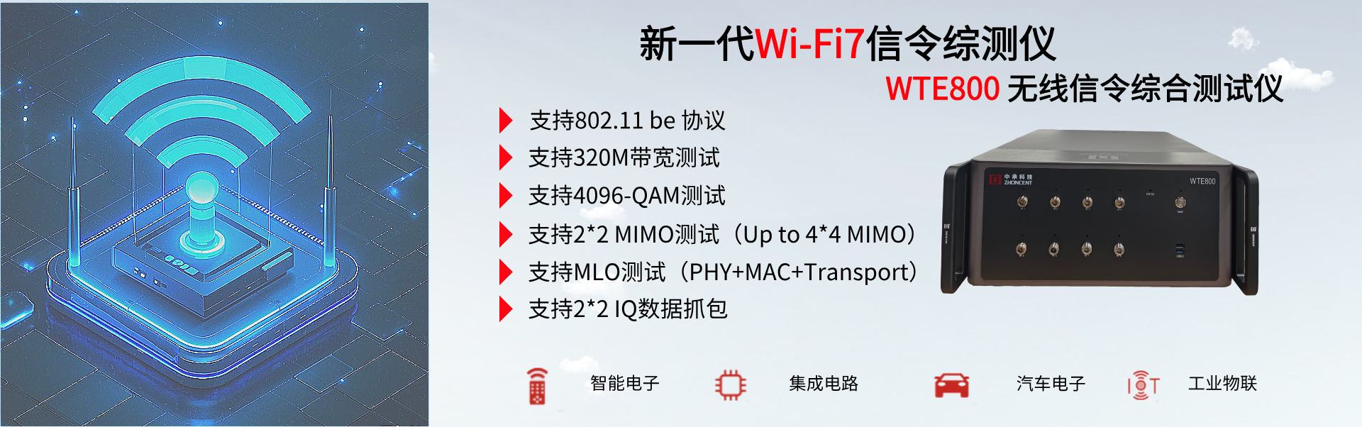 WTE800無線信令綜合測試儀(以下簡稱“WTE800”)是由深圳市中承科技有限公司自主研發(fā)和生產(chǎn),可用于Wi-Fi設(shè)備在研發(fā)、生產(chǎn)、認(rèn)證等環(huán)節(jié)測試的多功能綜合測試儀,通過配置客戶端或AP端參數(shù),真實(shí)建立Wi-Fi網(wǎng)絡(luò)呼叫連接,自動實(shí)現(xiàn)被測件的各項(xiàng)射頻與協(xié)議性能指標(biāo)精準(zhǔn)測試。